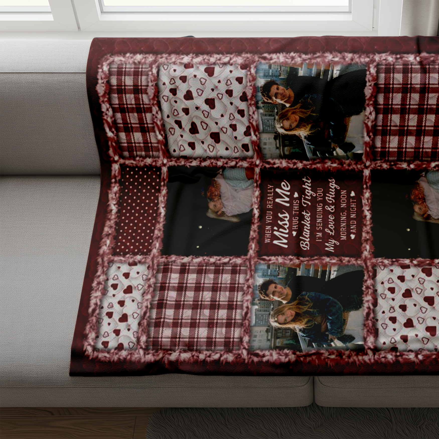 "When you really miss me/us, hug this blanket tight. I'm/We're sending you my/our love & hugs. Morning, noon and night."