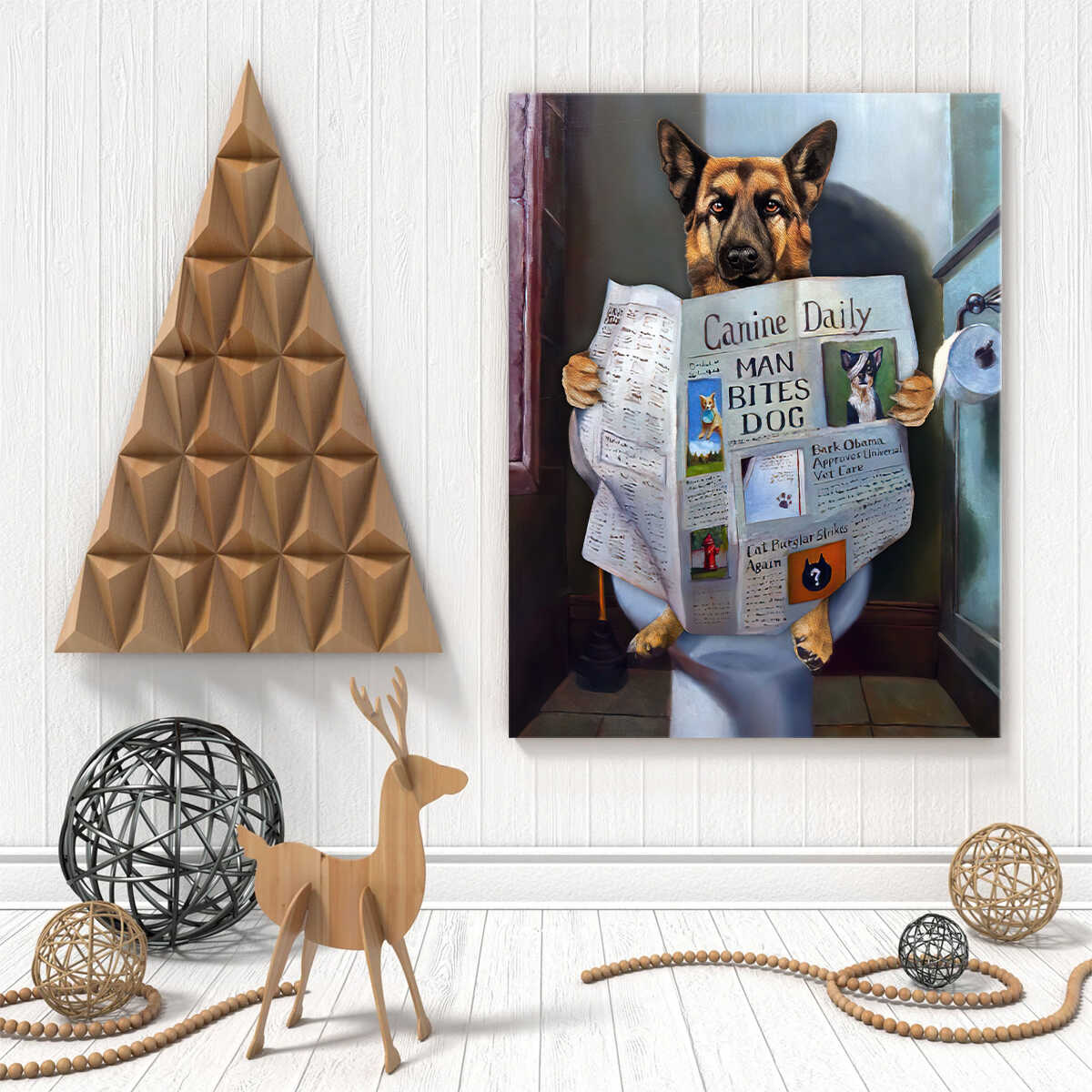 Dog Read Newspaper in Toilet Portrait will also definitely be an interesting highlight on your bathroom wall, making any guest laugh when entering. Give them something they’ll never forget – an eye-catching reminder of how much you care!