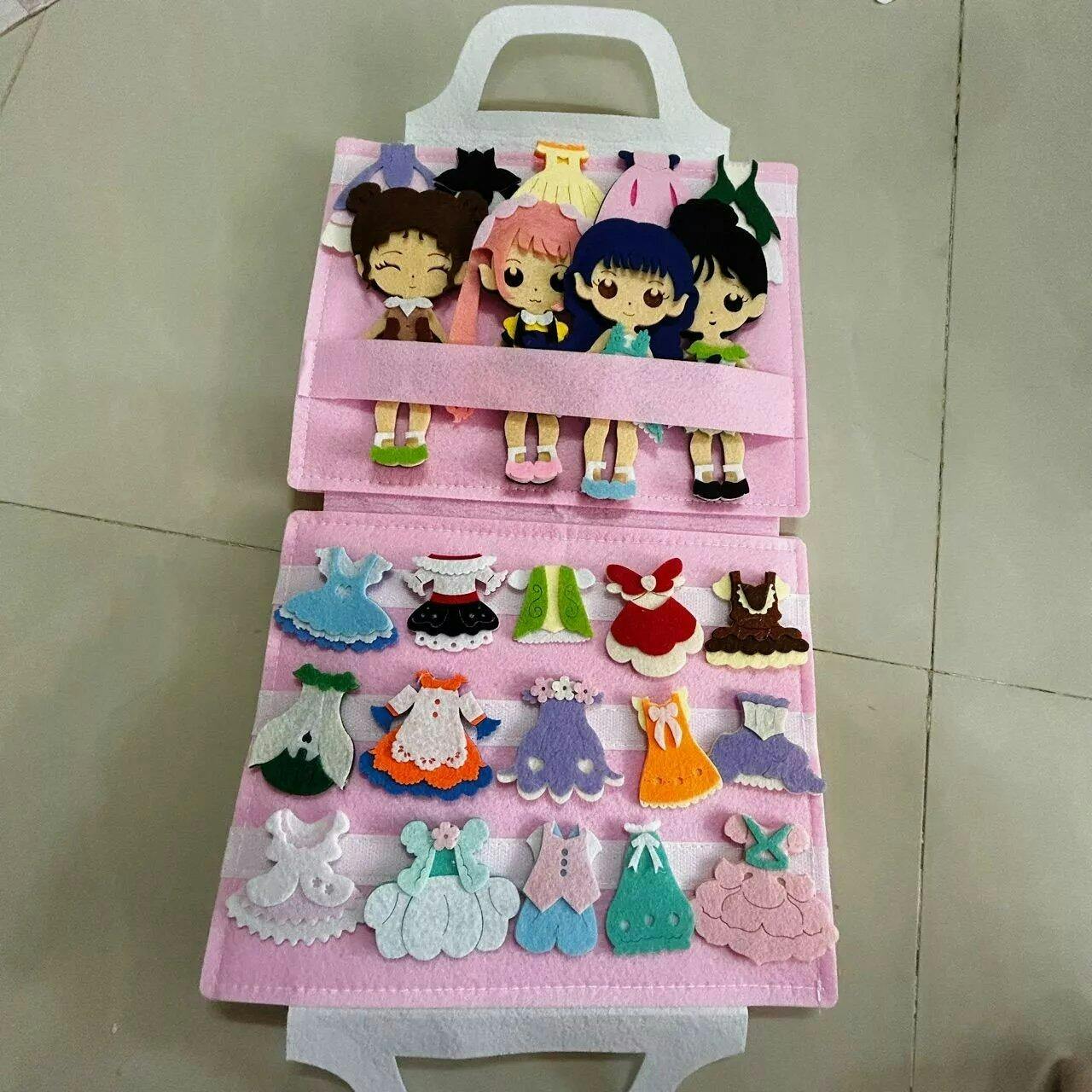 Fairy Princess Felt Dress-Up Doll Playset – Peel & Stick Fashion Activity Book with Carry Bag, Personalized Handmade Kids Toy