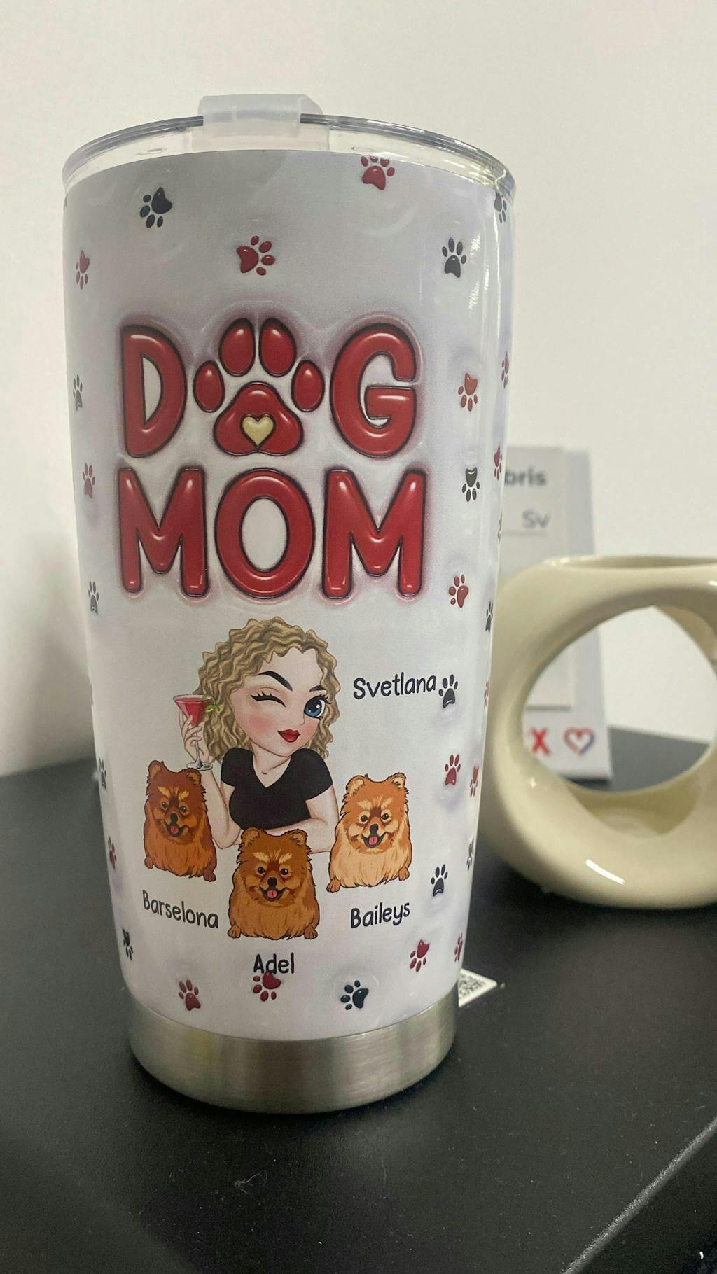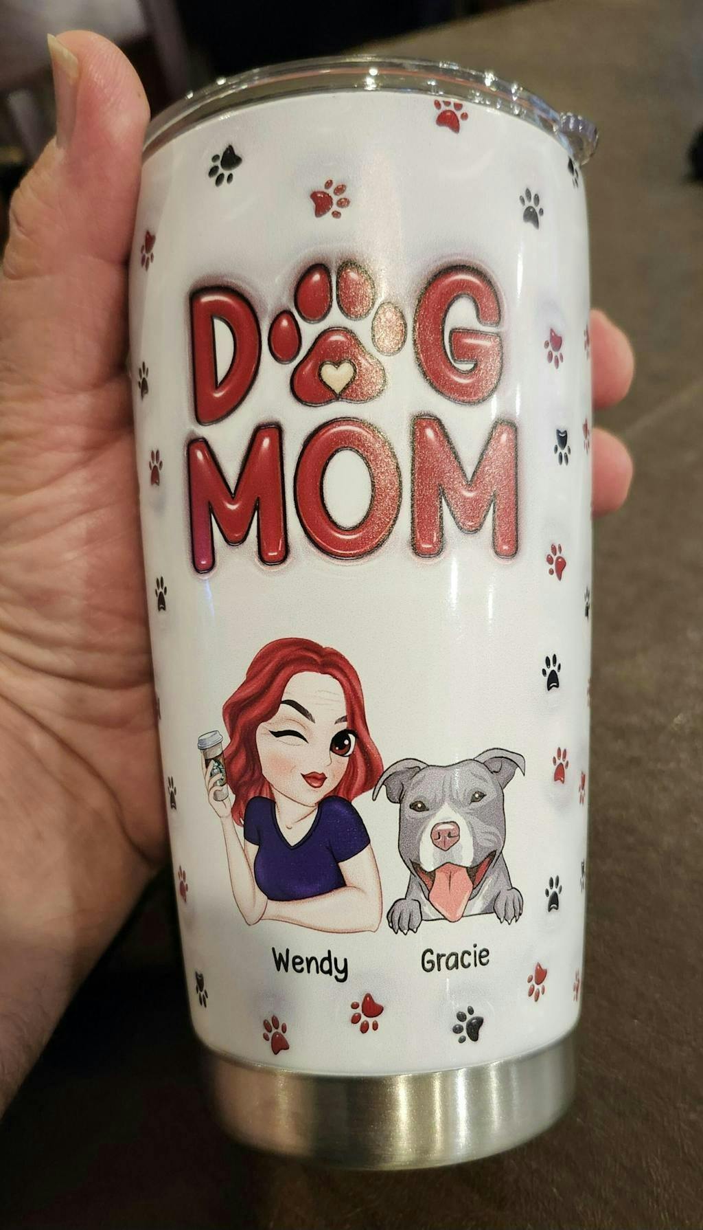 Lovely Dog Mom v3 20oz Tumbler - Personalized Custom 3D Inflated Effect Tumbler, Gift for Dog Mom