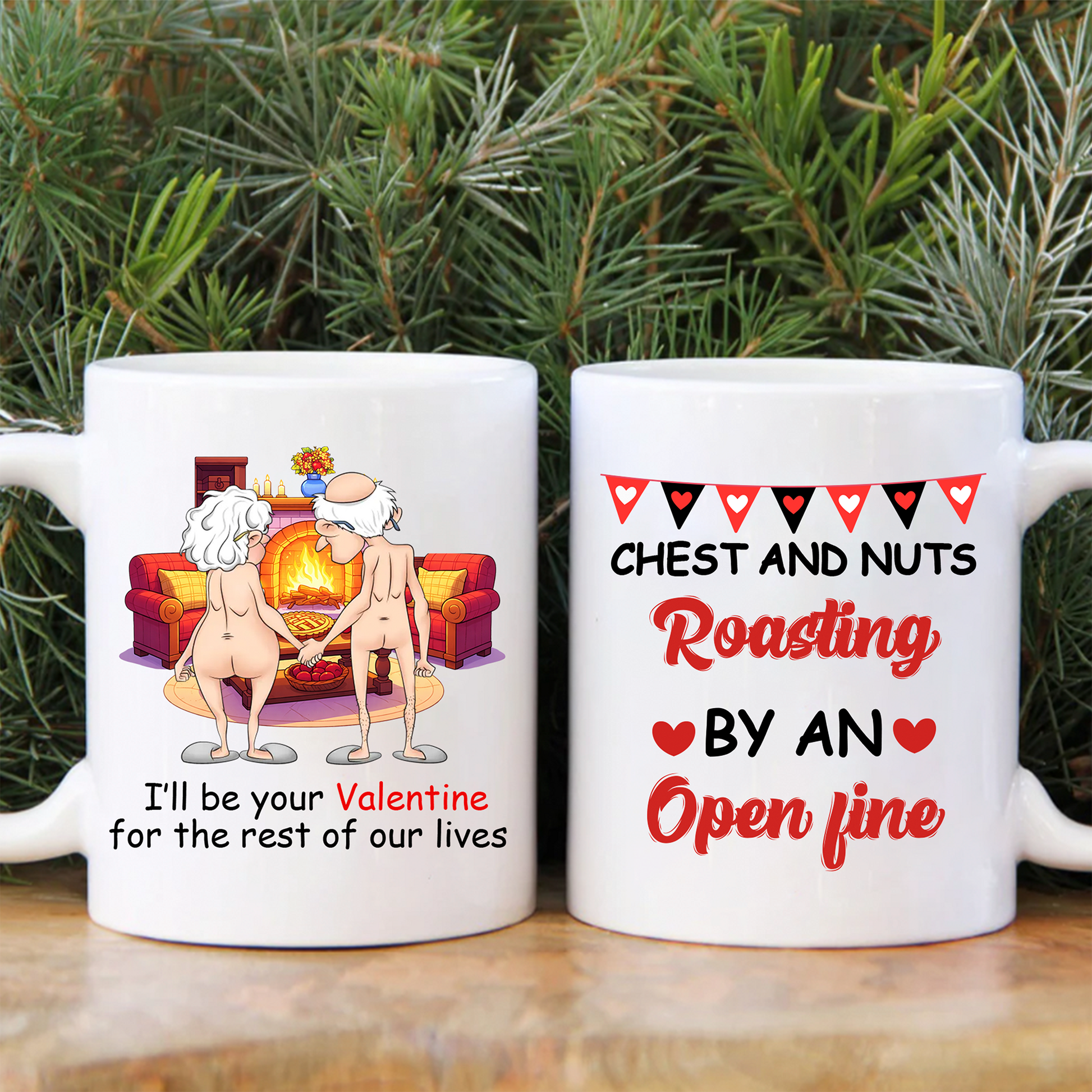 Personalized Funny Old Couple Ceramic Mug - Christmas Gift Idea For Couple - Chest And Nuts Roasting By An Open Fire