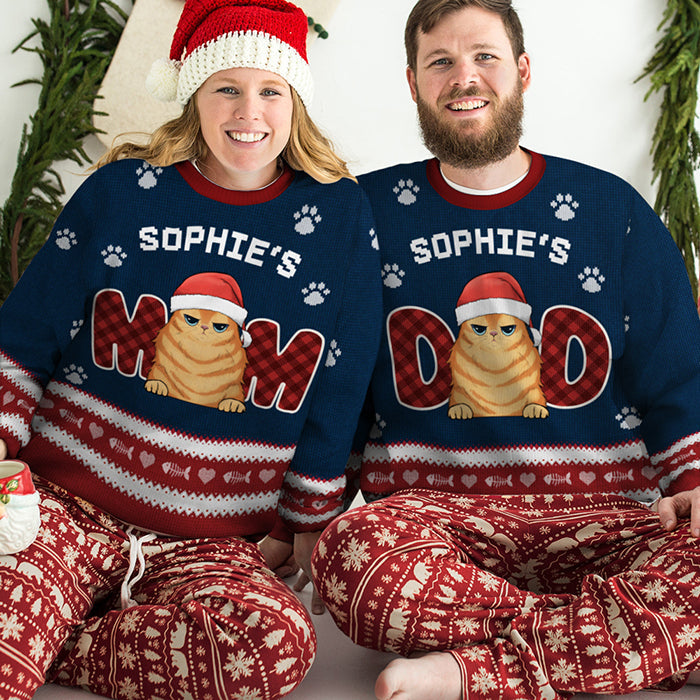 We're Cat Parents Ugly Sweater - Personalized Custom Unisex Ugly Christmas Sweatshirt, All-Over-Print Sweatshirt - Gift For Cat Lovers, Pet Lovers, Christmas Gift